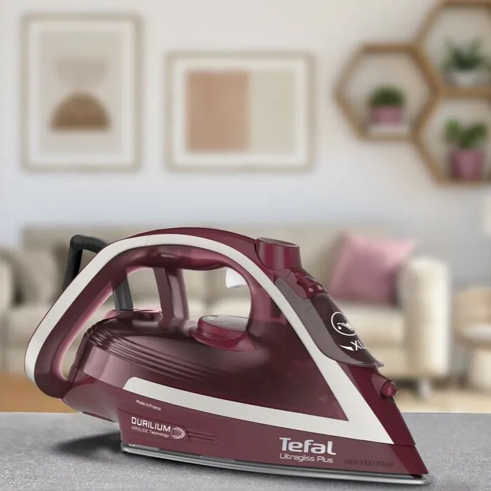 The new Durilium Airglide soleplate, Tefal's #1 in Glide, ensures highly scratch-resistant and durable performance