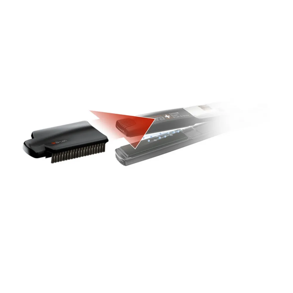 - X-Brush with natural bristles for gentler, faster straightening and enhanced hair shine